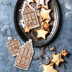 Maak prachtige peperkoekhuisjes en sterretjes die zowel de tafel als de boom versieren. Geweldig voor feestelijk knutselen met kinderen.