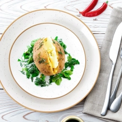 Hoogwaardige keramische afwerking met een gladde glazuurlaag, prettig aan te raken, gemakkelijk te onderhouden en een mooie blikvanger op tafel.