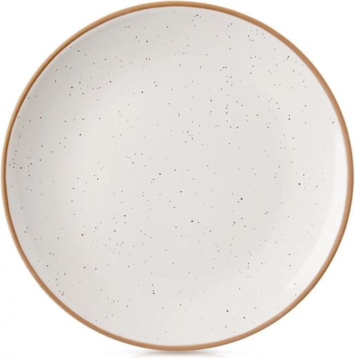 Elegant keramisch bord met een diameter van 20 cm, met een gespikkelde glazuur en een contrasterende, natuurlijk ogende rand. Dankzij de veelzijdige vorm en het gladde oppervlak is het perfect voor dagelijks gebruik én feestelijke gelegenheden. Het minimalistische uiterlijk combineert gemakkelijk met ander servies.