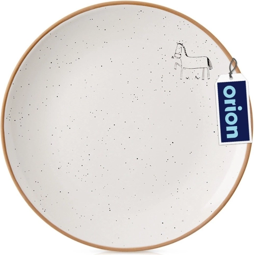 Dit stijlvolle keramische bordje is een uitstekende keuze voor dagelijks gebruik én feestelijke gelegenheden. De beige glazuur met fijne spikkels en de natuurlijke rand geven het servies een uniek karakter dat makkelijk te combineren is met andere items. Het bord heeft een klassieke ronde vorm en op het oppervlak een decoratief reliëf met paardenmotief.