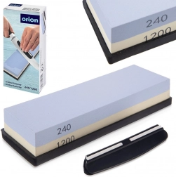 Herstel de scherpte van je keukenmessen eenvoudig en veilig. De dubbelzijdige watersteen van duurzaam korund combineert een grove zijde #240 voor snel uitlijnen van de snede en een fijne zijde #1200 voor de uiteindelijke nabehandeling en polijsten. De anti-slip siliconen basis houdt de steen stabiel, terwijl de meegeleverde geleider een consistente hoek en een professioneel resultaat garandeert.