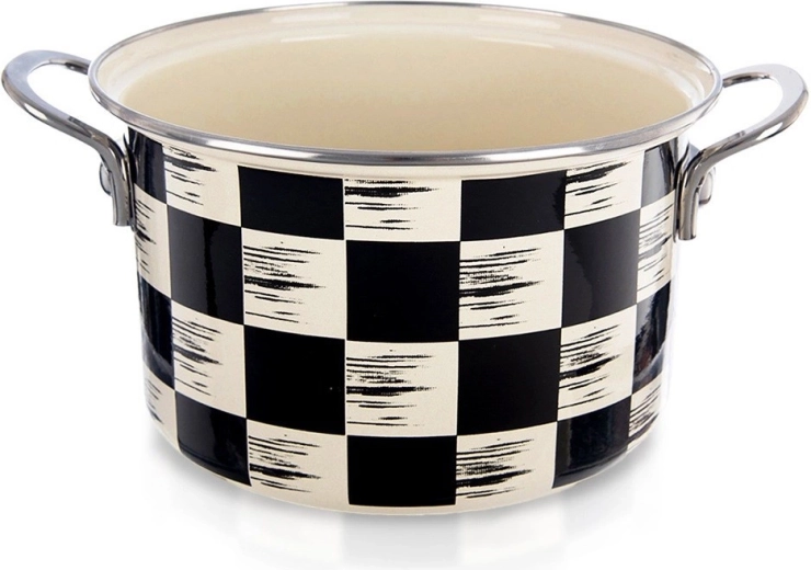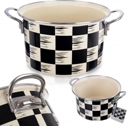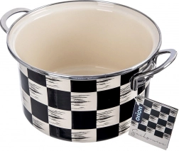 Het elegante Schaakbord-design in zwart‑beige blokken past perfect in zowel moderne als retro keukens. Stevige, ergonomische grepen bieden een zekere grip tijdens het dragen. De pan is compatibel met gas-, elektrische, keramische, halogeen- en inductiekookplaten, kan in de oven en is gemakkelijk te reinigen in de vaatwasser.