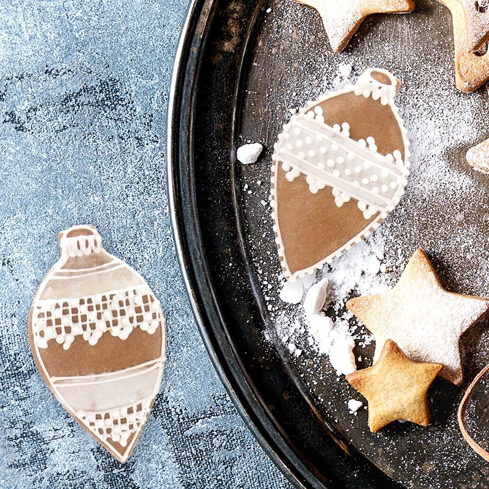 Maak feestelijke kerstballen van peperkoek en decoreer ze naar eigen fantasie.