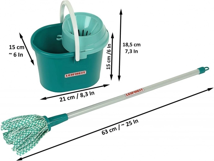 Realistische set voor kleine helpers in het huishouden: kinderemmer met opzet-wringer en een strokenmop onder de licentie van LEIFHEIT van het merk KLEIN. Geschikt om volwassenen na te bootsen, gemaakt van duurzame materialen en kan ook met water worden gebruikt voor een nog realistischer spel.