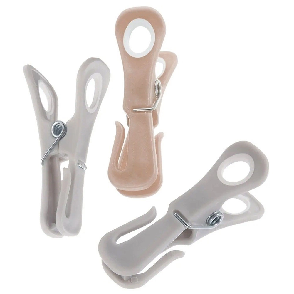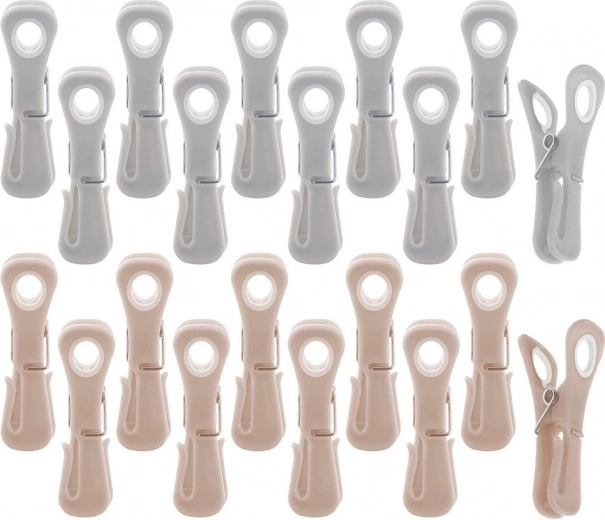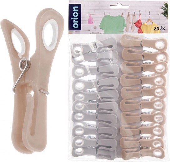 Het grote oog aan de bovenzijde maakt snel ophangen van een kledinghanger direct aan de waslijn mogelijk, ideaal voor het drogen van delicate kledingstukken. De neutrale kleuren passen in elk huishouden en de klassieke vorm zorgt voor compatibiliteit met de meeste droogrekken en waslijnen.