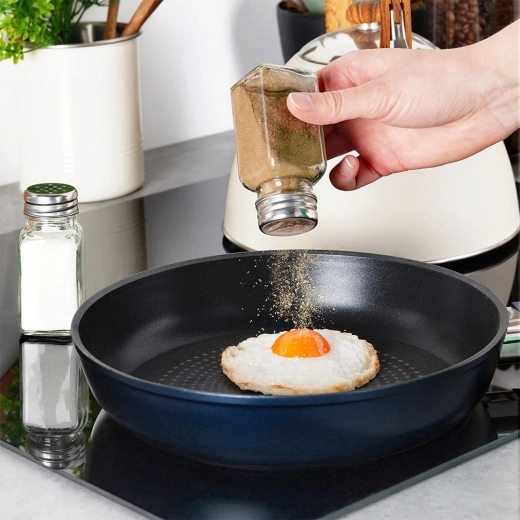Geperforeerde metalen deksels zorgen voor gelijkmatig strooien en controle over de hoeveelheid – ideaal voor zout, peper en fijn gemalen kruiden.