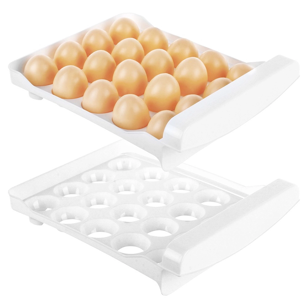 Bewaar tot 40 eieren op twee niveaus en bespaar ruimte in de koelkast. Elke laag biedt plaats aan 20 stuks in afzonderlijke houders voor maximale bescherming.
