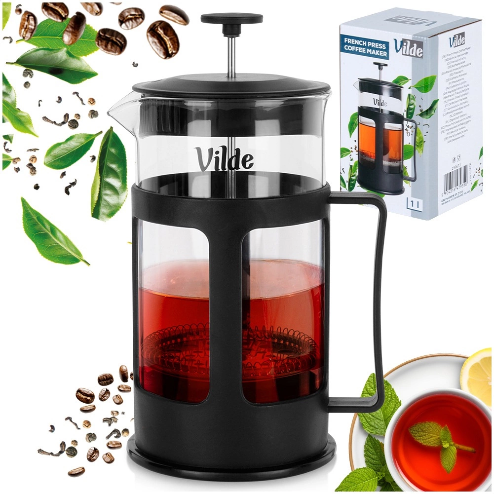 De elegante VILDE french press combineert de eenvoud van handmatige bereiding met een pure smaak. De borosilicaatglazen kan is bestand tegen thermische schokken, terwijl de roestvrijstalen pers met fijn filter zelfs kleine deeltjes afscheidt voor een kristalheldere drank. De ergonomische handgreep en precieze schenktuit maken serveren gemakkelijk, zowel thuis als in de horeca.