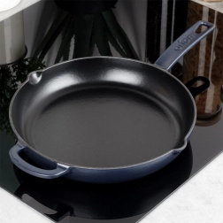De zwarte emaille aan de binnenzijde maakt comfortabel bakken en eenvoudig schoonmaken mogelijk. De blauwe glazuur aan de buitenkant voegt stijl en duurzaamheid toe.