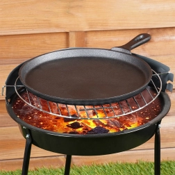 Dankzij de hittebestendigheid is hij uitstekend voor bakken en braden op het fornuis, in de oven, op de grill en direct boven het vuur. De pan heeft geen chemische anti-aanbaklaag – natuurlijke anti-aanbak ontstaat door de juiste verzorging en seasoning.