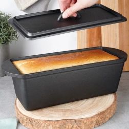 Universele gietijzeren vorm met deksel voor veelzijdig koken en bakken. Dankzij het massieve gietwerk behoudt de vorm een stabiele temperatuur, zorgt voor gelijkmatige garing en een sappig resultaat. Het deksel helpt vocht en vorm te behouden – perfect voor regelmatige sneetjes toastbrood.