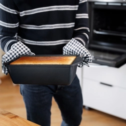 De volledig gietijzeren uitvoering geleidt en houdt warmte uitstekend vast, waardoor brood, cake en gehaktbrood gelijkmatig gaar en sappig worden.