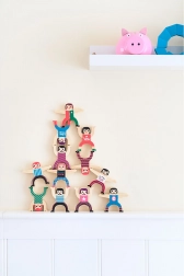 Kinderen oefenen tijdens het stapelen van de acrobaten spelenderwijs hun coördinatie, geduld en logisch denken. Ideaal spel voor kleuters en schoolkinderen.