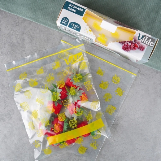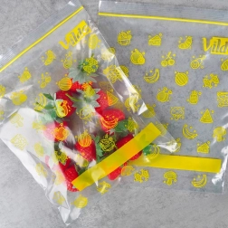 De zipzakjes met een afmeting van 18 × 23 cm zijn ideaal voor hygiënische voedselopslag thuis en onderweg. Het transparante materiaal met opdruk maakt snelle visuele controle van de inhoud mogelijk, terwijl de betrouwbare ritssluiting voedsel langer vers houdt.