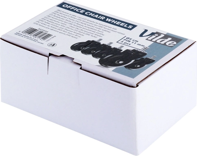 Vervangende set van vijf wielen voor bureaustoelen met eenvoudige montage zonder gereedschap. Rubberen wielen zorgen voor een stille en soepele rit, beschermen de vloer tegen krassen en hebben een universele pen van 11 mm. Geschikt voor de meeste stoelen, ideaal voor harde vloeren.