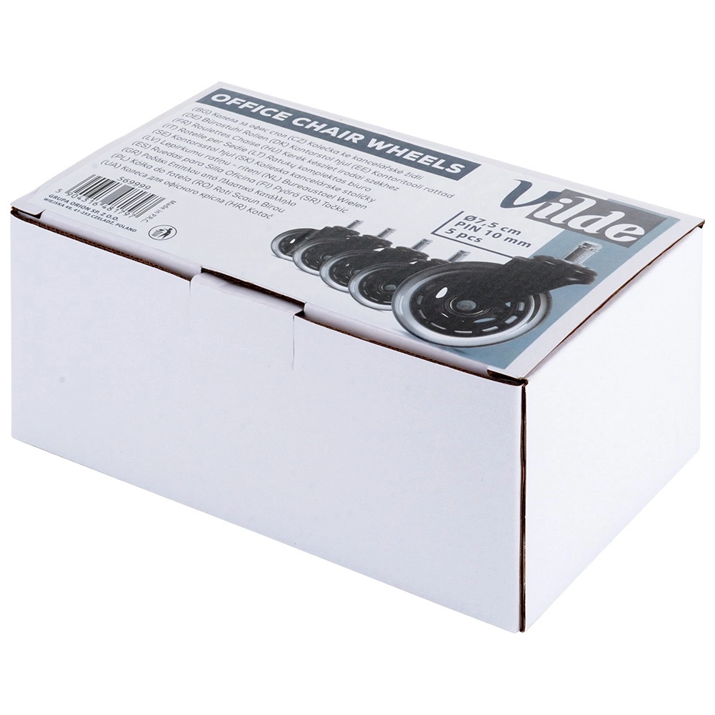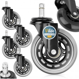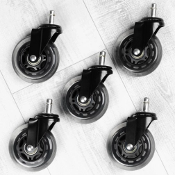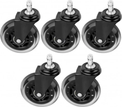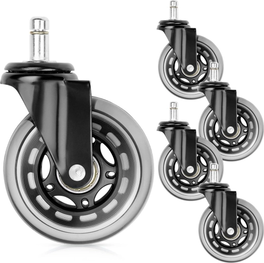 Deze set van vijf vervangende wielen voor bureaustoelen zorgt voor comfortabel en gecontroleerd bewegen op harde vloeren. De wielen van duurzaam rubber dempen geluid, sparen oppervlakken en bieden dankzij kwaliteitslagers soepel draaien, ook bij langdurig gebruik.