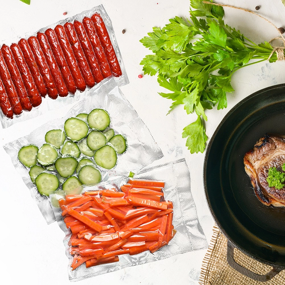 Houd voedsel tot 5× langer vers dankzij betrouwbare vacumeerzakken. Eén zijde is glad, de andere gestructureerd (gereliëerd) voor snel en gelijkmatig afzuigen van lucht en perfecte afdichting. De transparante uitvoering maakt inhoudscontrole en voorraadbeheer in voorraadkast en vriezer eenvoudig.