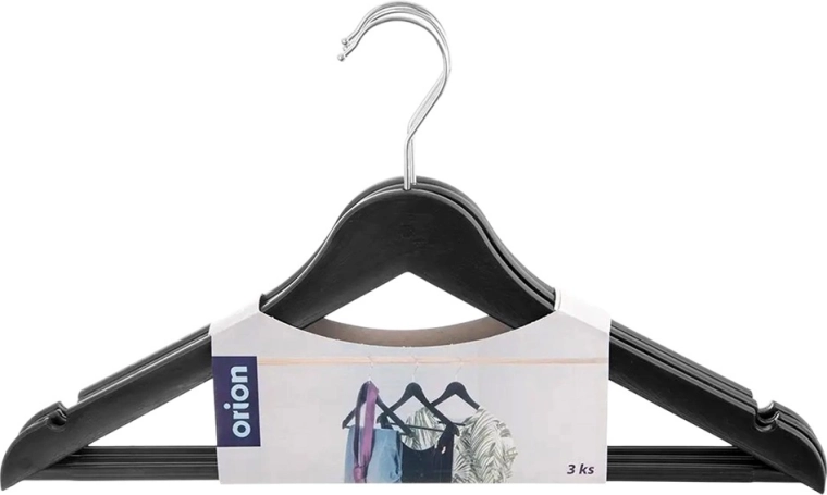 Praktische set van 3 zwarte hangers met een draaibare metalen haak voor perfecte organisatie van je garderobe. De hangers met houtlook hebben inkepingen op de schouders en een onderstang voor broeken of sjaals – ideaal voor T-shirts, overhemden, jurken en zelfs zwaardere jassen. Universeel gebruik, stijlvolle uitstraling en stevige afwerking in één set.