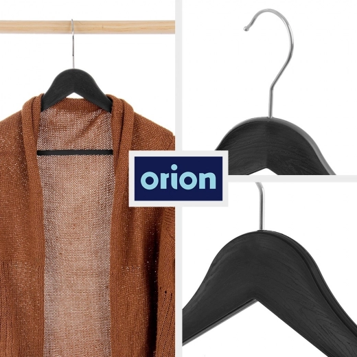 Houd je garderobe overzichtelijk en kreukvrij. Deze set van 3 zwarte hangers met realistische houtimitatie biedt een tijdloos design en duurzame afwerking. De draaibare metalen haak maakt ophangen vanuit elke richting eenvoudig en de praktische inkepingen op de schouders fixeren tops met spaghettibandjes. De onderstang is geschikt voor broeken, sjaals of stropdassen.