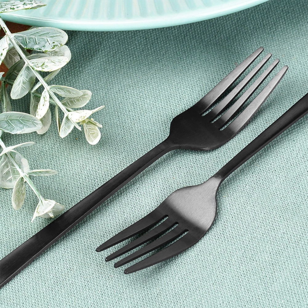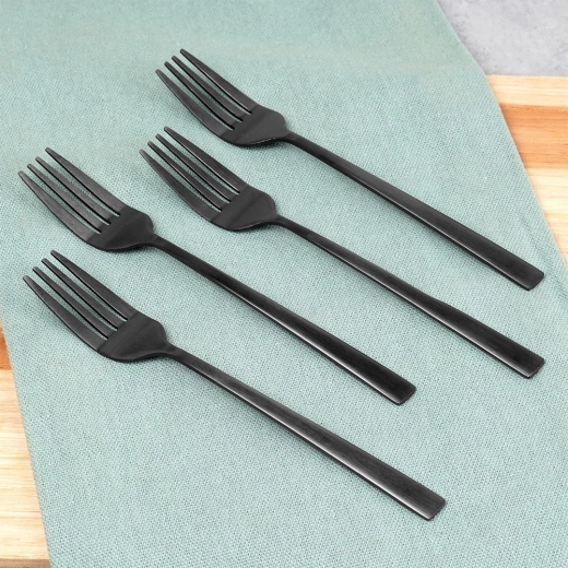 Maak je tafel compleet met stijlvolle dessertvorkjes met een matzwarte satijnen afwerking. Dankzij het hoogwaardige roestvrij staal zijn ze duurzaam, veilig voor de gezondheid en behouden ze langdurig hun elegante uitstraling. Ze passen perfect bij zowel klassiek als modern servies.