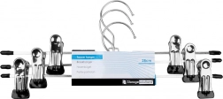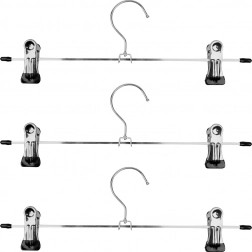Ontdek een praktische oplossing voor het organiseren van je garderobe: een set van drie duurzame metalen hangers met schuifbare clips en beschermende rubberen inlays. Dankzij de verstelbare breedte klemmen ze veilig verschillende soorten kleding vast en helpen ze kreukvorming te voorkomen. Het minimalistische ontwerp in zilverkleur past in elke kast.