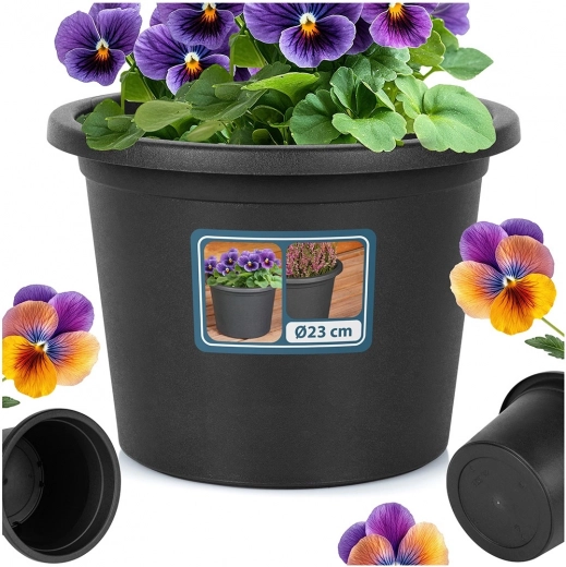 De zwarte ronde bloempot met een diameter van 23 cm en een hoogte van 16,5 cm is een uitstekende keuze voor het kweken van planten of als decoratieve overpot. Dankzij de weerbestendigheid kun je hem zonder zorgen het hele jaar buiten gebruiken – bestand tegen regen, wind en zonlicht.