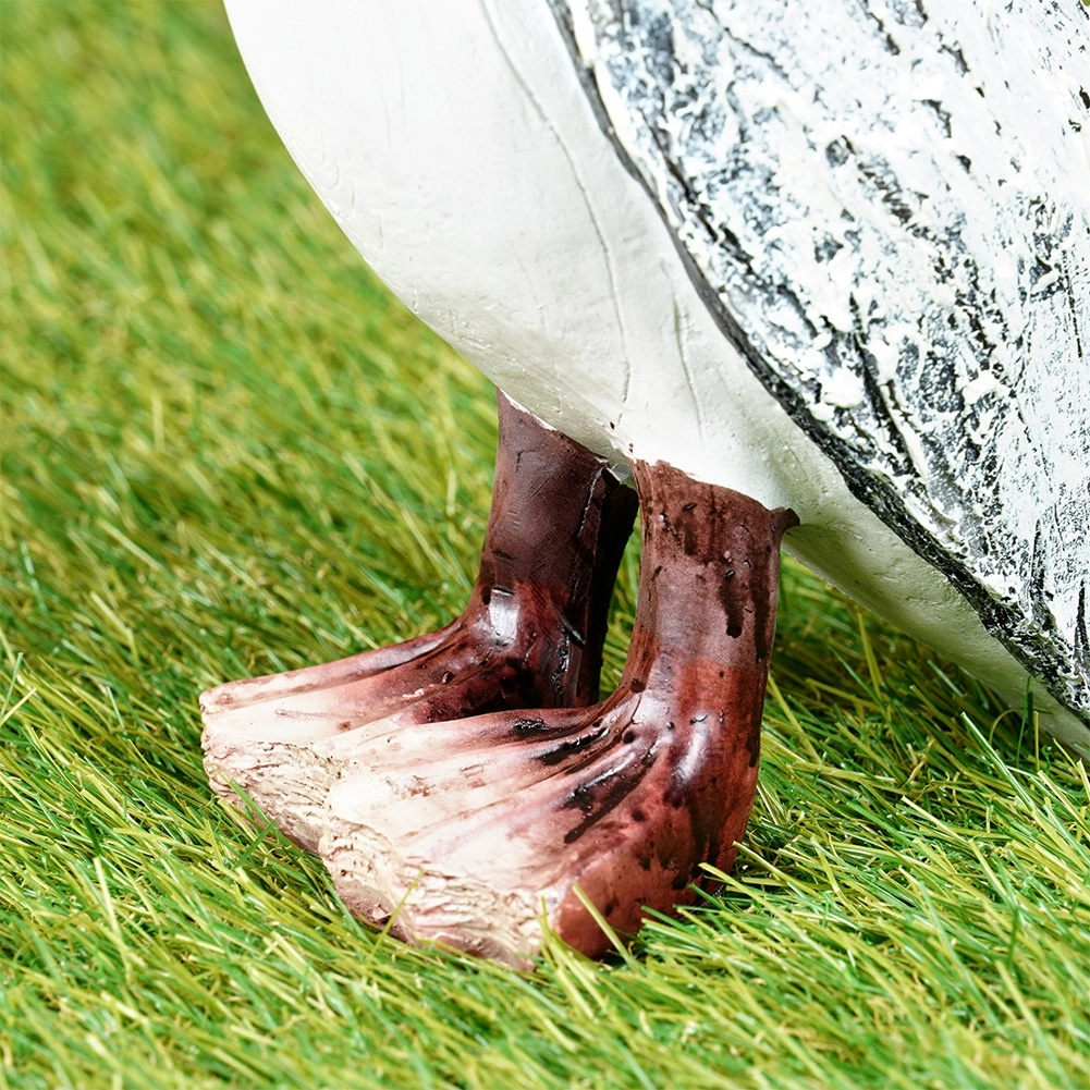 De natuurgetrouwe verenstructuur, de snavelvorm en de handgeschilderde look maken van het beeldje een opvallend decoratief element voor elke buitenruimte.