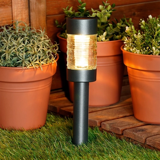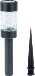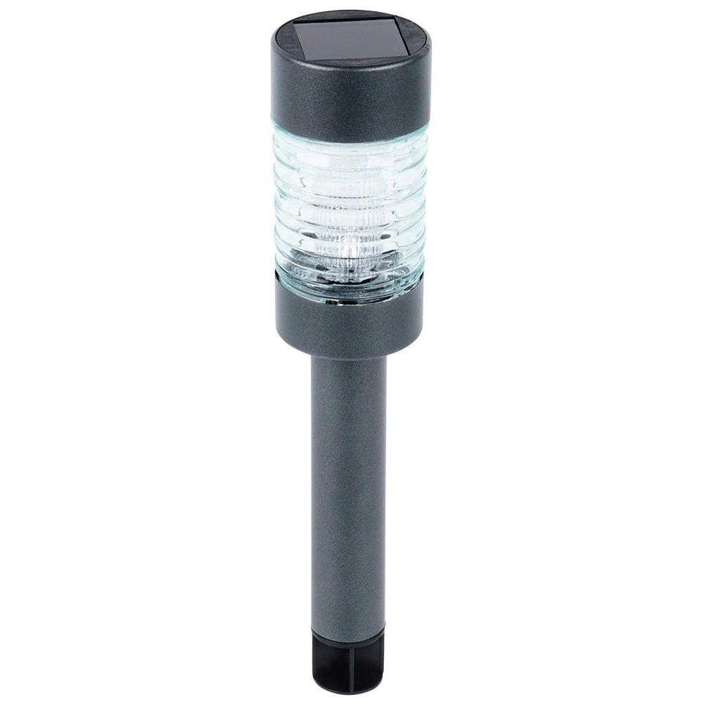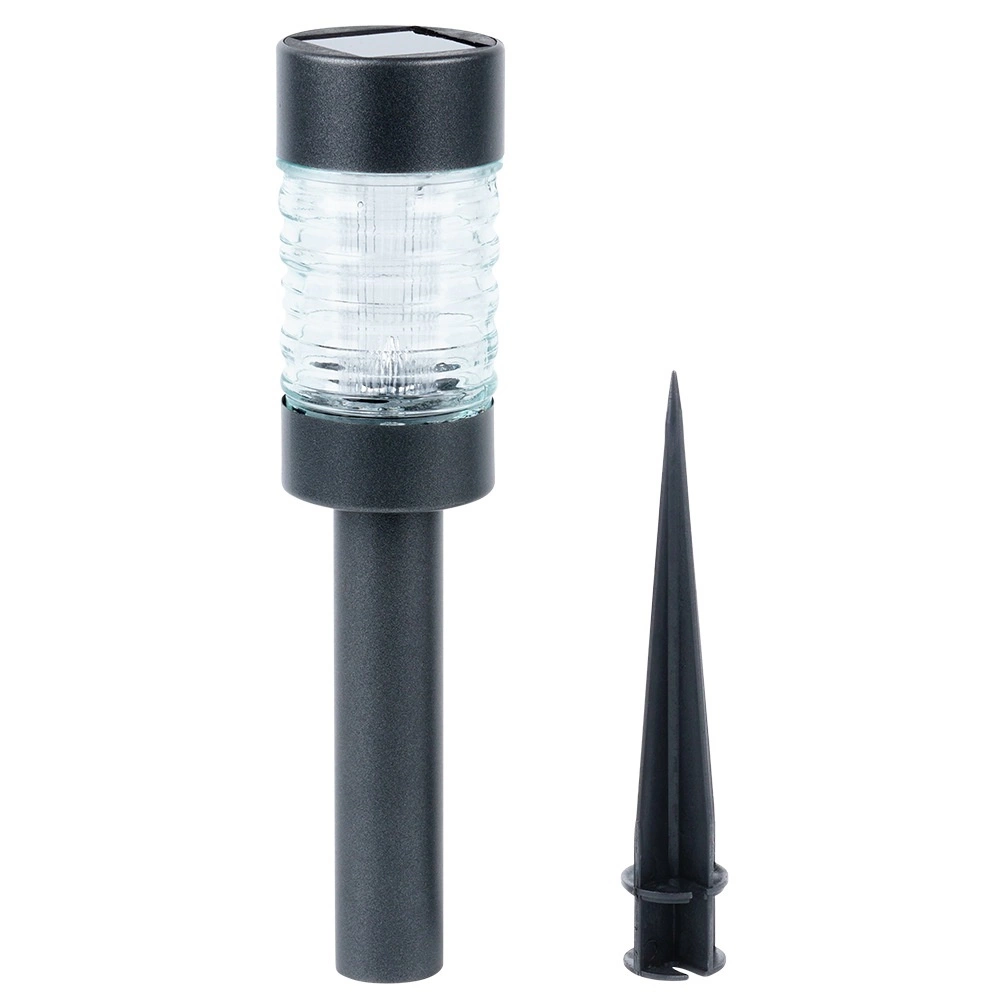 De solar LED‑lamp met grondpen combineert modern minimalisme met betrouwbare prestaties. Het warm witte licht van 2700–3000 K zorgt voor een aangename sfeer en verlicht veilig tuinpaden, opritten en terrastranden. Na volledig opladen brandt hij ongeveer 6 uur en dankzij de automatische schemersensor is er geen bediening nodig.