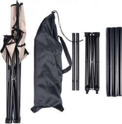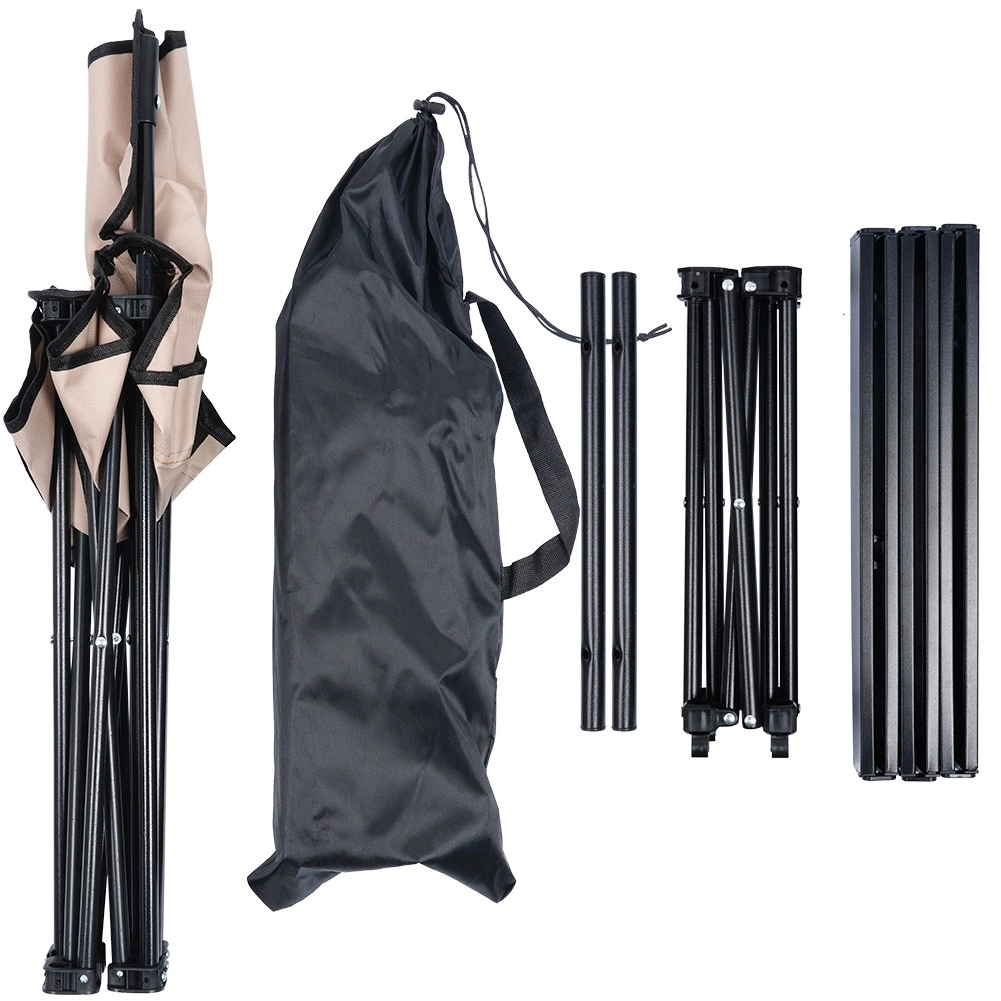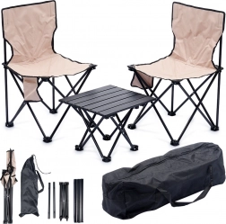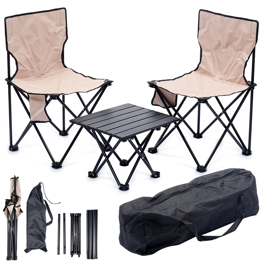De focus op stabiliteit en duurzaamheid wordt gewaarborgd door het stalen frame in zwart en de sterke polyesterstof in een elegante beige tint. Dankzij de compacte afmetingen is de set perfect voor de camping, picknick, vistrips en relaxen in de tuin.