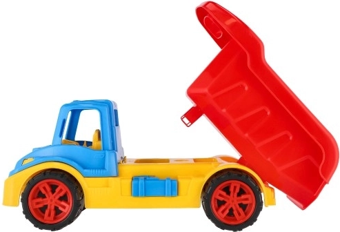 Deze kiepwagen is ontworpen met een grote nadruk op duurzaamheid omdat hij gemaakt is van hoogwaardig plastic. Brede en grote wielen maken het gemakkelijk om verschillende oppervlakken te overwinnen. Kinderen kunnen een reeks kleine schatten of speelgoed in de laadbak plaatsen.