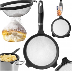 De universele keukenzeef maakt dagelijks koken en bakken gemakkelijker. Dankzij het dichte, fijn geweven roestvrijstalen gaas filter je thee of bouillon nauwkeurig, zeef je meel of bestuif je desserts met poedersuiker. De lichte constructie met ergonomische handgreep zorgt voor comfortabele grip en controle tijdens het werken.