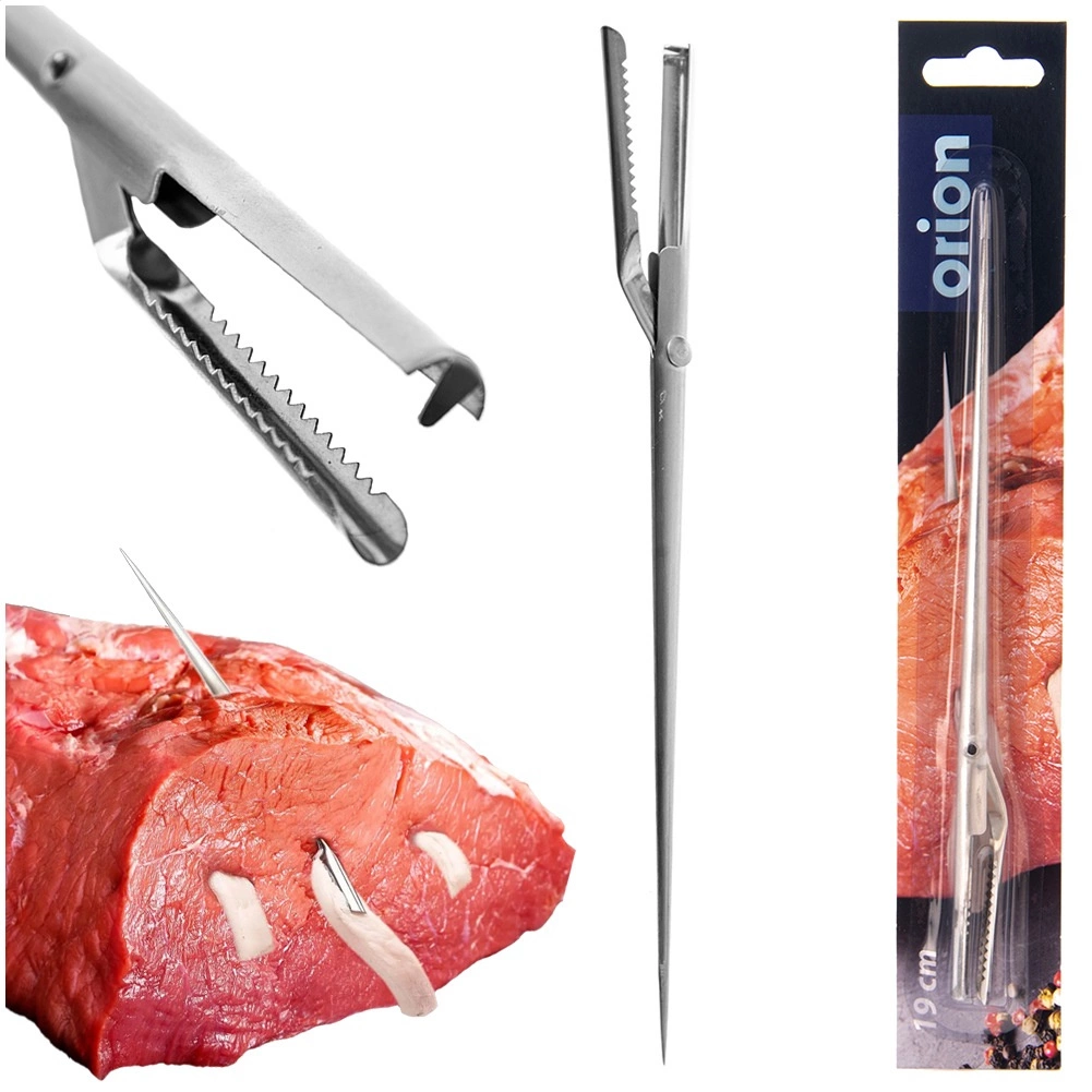 De lange, slanke naald met soepele penetratie maakt het eenvoudig om spek of groenten diep in het vlees te plaatsen, met een gelijkmatige verdeling van de ingrediënten.