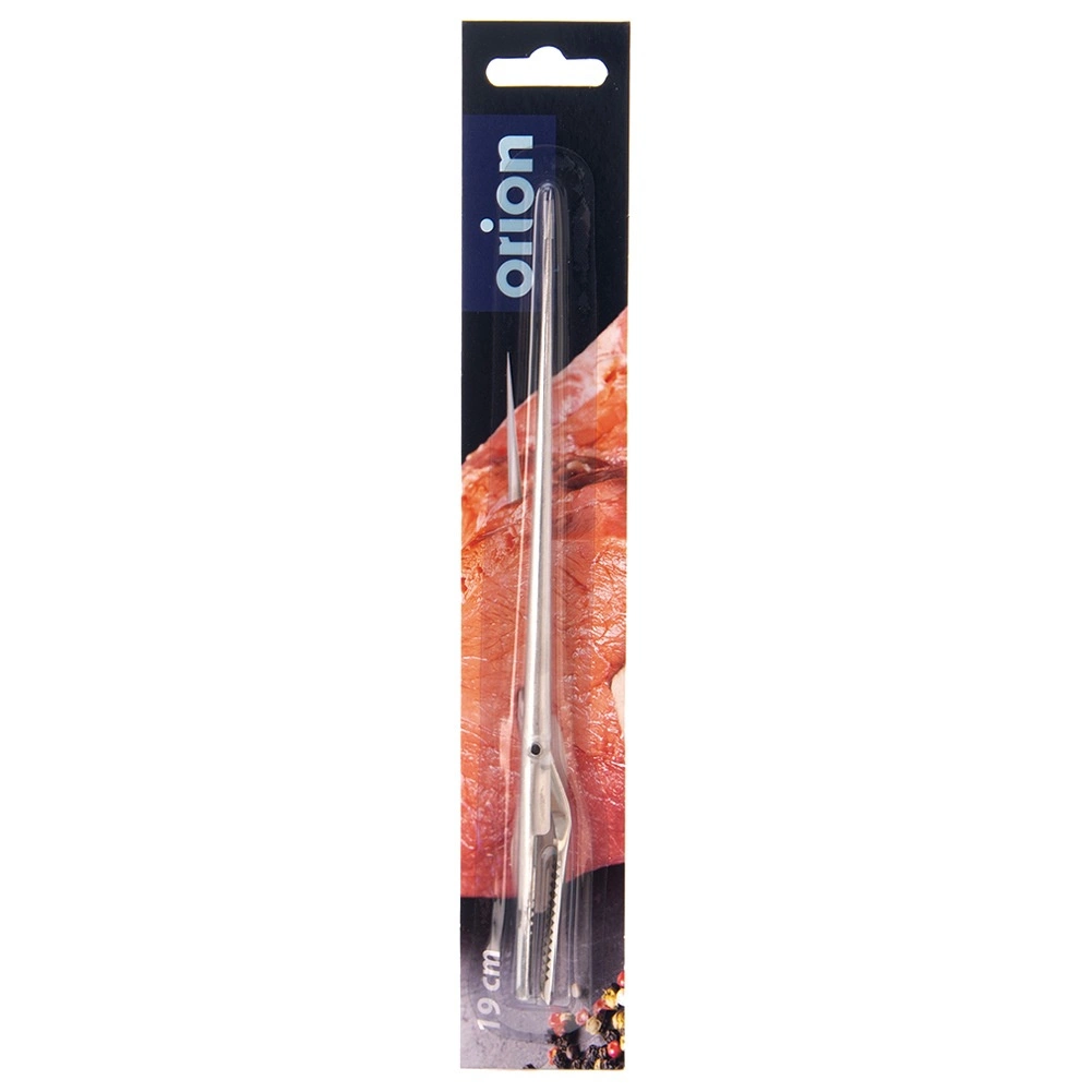 Deze roestvrijstalen spiknaald is een betrouwbare hulp bij het bereiden van sappige en geurige braadgerechten. U schuift moeiteloos reepjes spek, bacon of groenten in rund, varken, gevogelte en wild. De robuuste uitvoering en gemakkelijke hantering zijn ideaal voor zowel de thuiskeuken als de professionele gastronomie.