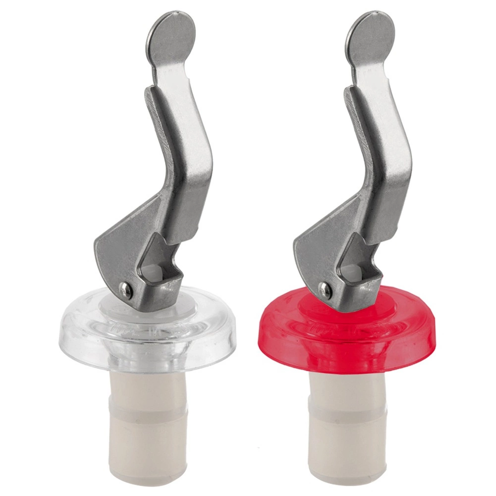 Hoogwaardige materialen – roestvrij staal en stevig plastic – zorgen voor een lange levensduur en veilig gebruik. De stoppers hebben compacte afmetingen (lengte ca. 9 cm, diameter ca. 3 cm) en passen op verschillende halsdiameters. In de verpakking vind je één transparante en één rode stop voor eenvoudige herkenning.