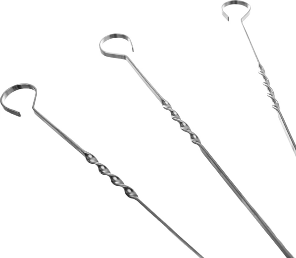 Elke spies heeft een praktisch oog aan het uiteinde voor eenvoudig dragen en draaien, waardoor je ze comfortabel kunt hanteren zelfs met een gesloten grilldeksel. Perfect voor zowel de grill als de oven. Handwas aanbevolen om de perfecte staat te behouden.