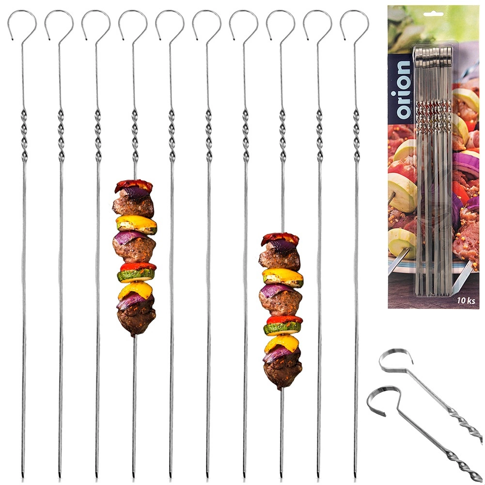 De set roestvrijstalen spiezen is ideaal voor het bereiden van sjasliek van vlees, groenten en fruit. Dankzij de platte vorm draaien de ingrediënten niet mee tijdens het garen, wat gelijkmatige garing en een perfect knapperig resultaat garandeert. De stevige constructie staat garant voor een lange levensduur en herhaald gebruik.