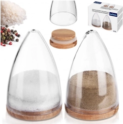 De set bevat twee strooiers voor zout en peper. De transparante behuizing maakt directe controle van de hoeveelheid mogelijk, terwijl het beukenhouten deksel met een siliconen afdichting het aroma binnen houdt en de inhoud tegen vocht beschermt. Dankzij de kleine doseeropening aan de punt strooi je precies zoveel als je nodig hebt – zonder onnodig morsen.