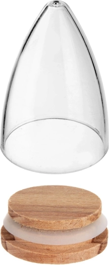 De transparante behuizing voor eenvoudige inhoudscontrole wordt aangevuld met een beukenhouten deksel met siliconen afdichting, die beschermt tegen vocht en het aroma behoudt.