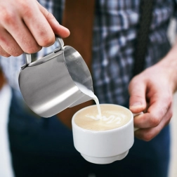 De gevormde tuit en stevige greep zorgen voor een vloeiende vloeistofstroom en een schone rand van het kopje – ideaal voor het serveren van melk en delicate sauzen.