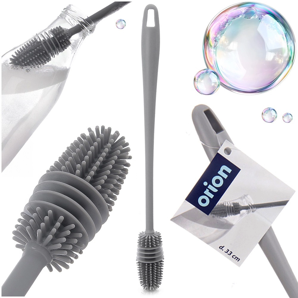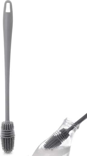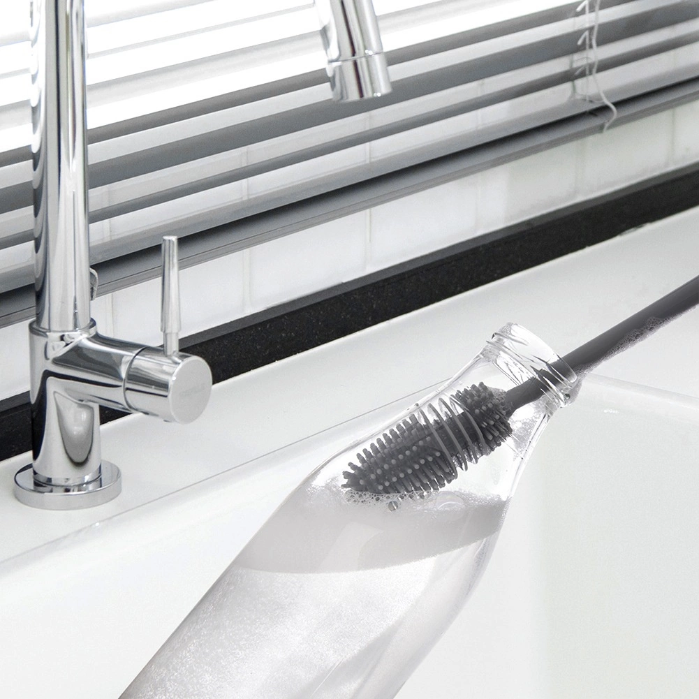De siliconen flessenborstel is ideaal voor het reinigen van flessen, glazen, karaffen, vazen en babyflessen. De lange handgreep en slanke kop maken het eenvoudig om tot op de bodem te reinigen, zelfs bij zeer smalle vaten. Siliconen haren zijn flexibel, duurzaam en tegelijk zacht, waardoor ze effectief reinigen zonder te krassen.
