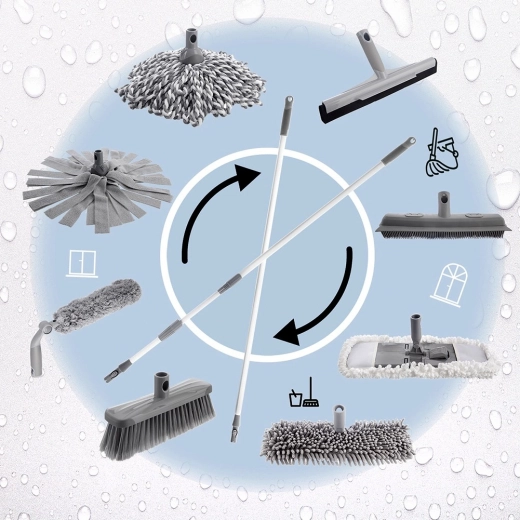 Dankzij de eenvoudig afneembare en herbruikbare hoes is het onderhoud simpel en voordelig. De lichte constructie in grijs ligt prettig in de hand en met de mogelijkheid om op een steel of telescoopsteel te plaatsen bereikt u moeiteloos hoge ramen en grote glasvlakken.