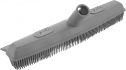 Dichte TPR-borstelharen in grijs verzamelen stof, haar en vacht van gladde vloeren en tapijten. Antistatische eigenschappen voorkomen dat vuil opwaait – ideaal ook voor kapsalons.