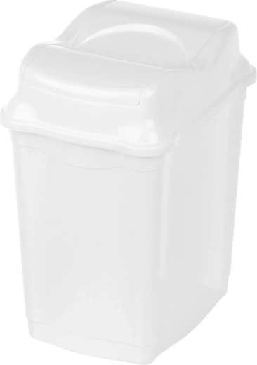 De elegante prullenbak met kiepdeksel houdt je omgeving schoon en verzorgd. De compacte afmetingen maken plaatsing op de vloer, op het werkblad of in een kastje mogelijk. Het deksel voorkomt geurverspreiding en dankzij de tweedelige kiepklep kun je afval comfortabel met één hand weggooien.