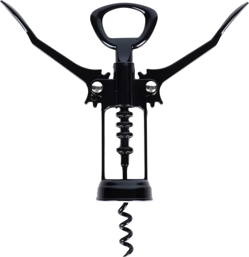 Elegante vleugelkurkentrekker van duurzaam metaal in het zwart voor snel en comfortabel openen van flessen. Dankzij het dubbelarmmechanisme verwijder je de kurk moeiteloos en kun je bovendien de functie van een flesopener voor kroonkurken gebruiken. Compacte afmetingen 5,5 × 4 × 16 cm, robuuste uitvoering en lange levensduur maken hem tot een ideale aanvulling voor elk huishouden en voor feestjes.