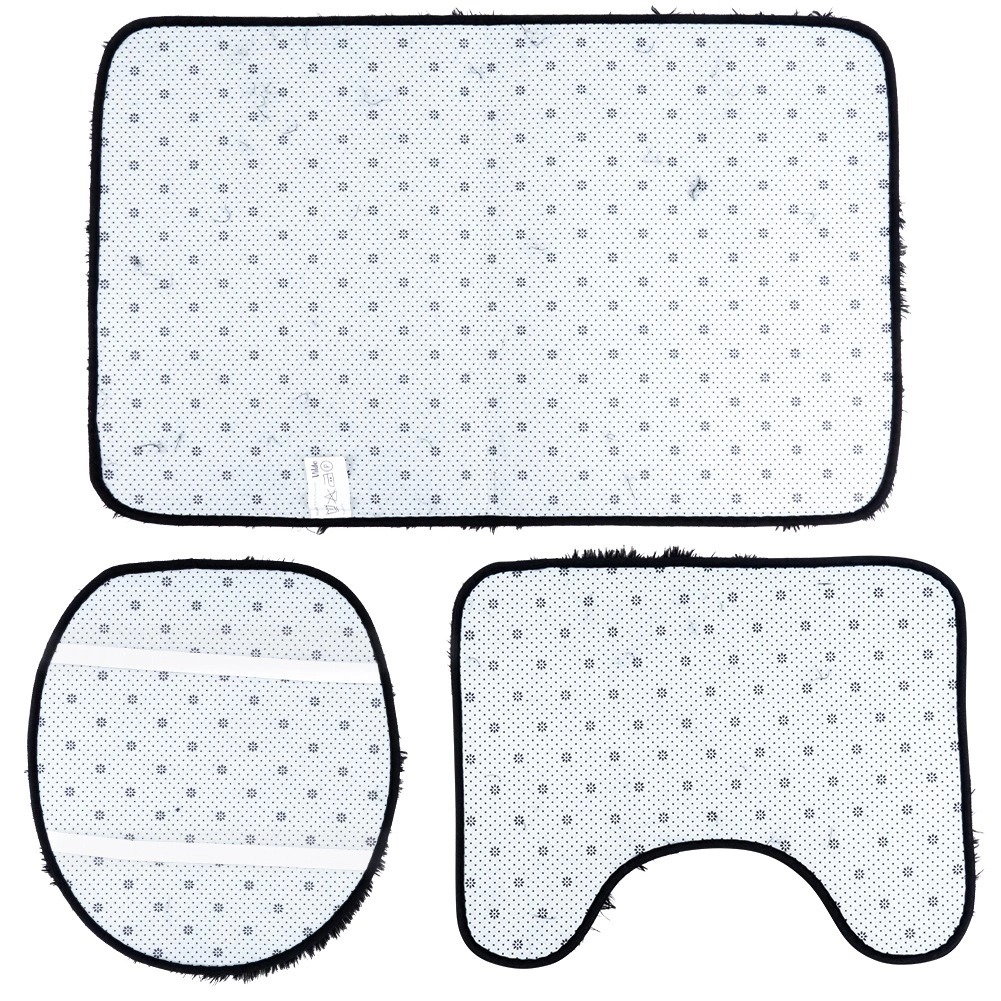 Rechthoekige mat voor bad/douche, U-mat voor het toilet en een hoes voor de toiletbril met elastieken voor een stabiele bevestiging.