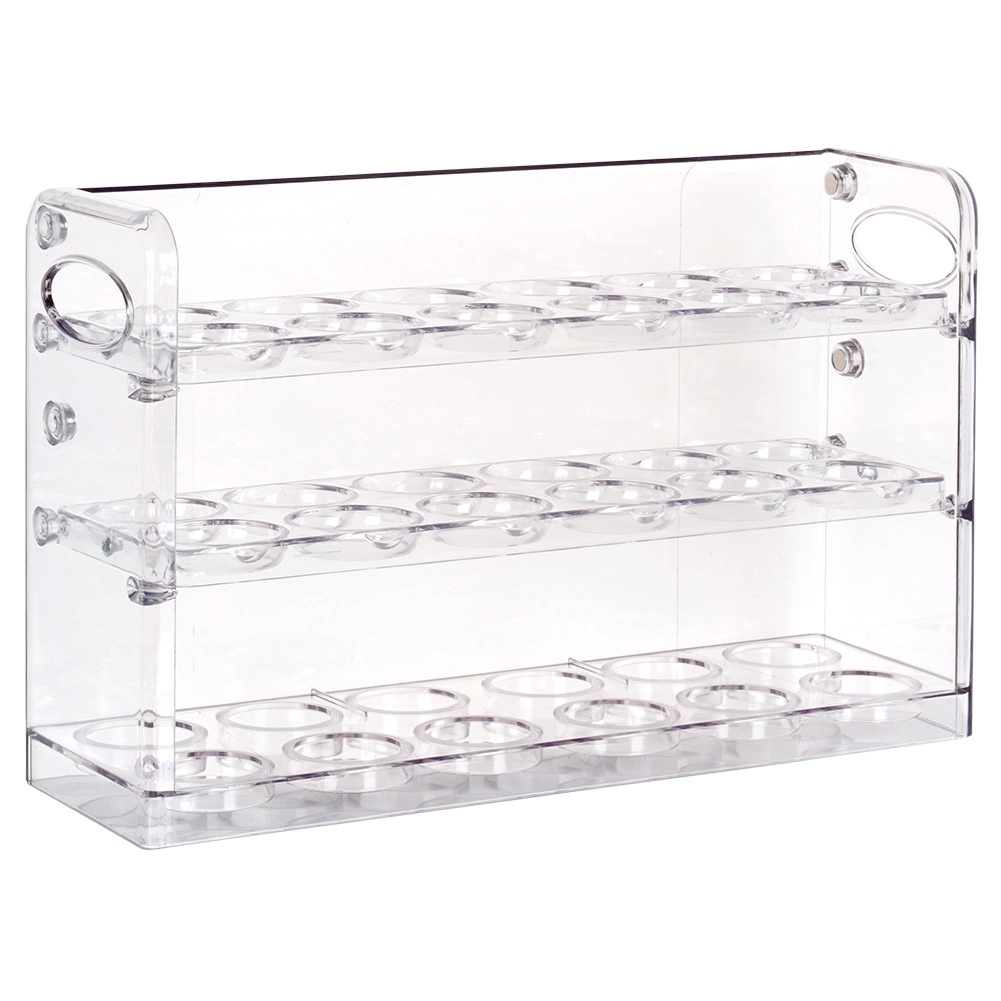 Nooit meer rommel in de koelkast. Deze compacte en stabiele organizer biedt plaats aan tot 36 eieren (3 niveaus × 12 stuks) en dankzij de transparante kunststof zie je altijd de actuele voorraad. Zijgrepen vergemakkelijken het dragen en de handling in de koelkast.