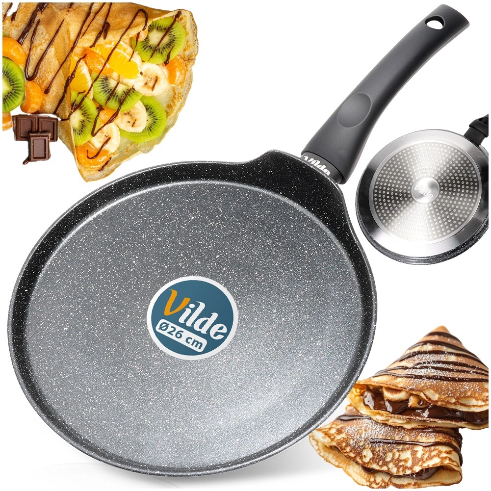 De speciale granietlaag voorkomt aanbranden en maakt bakken met een minimale hoeveelheid olie mogelijk. Pannenkoeken glijden moeiteloos van de pan op het bord.