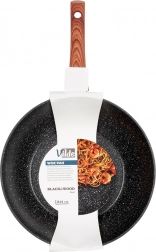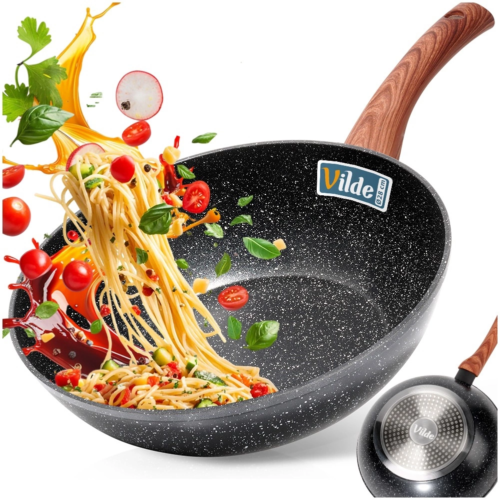 Ontdek de praktische granieten wok in een elegante combinatie van zwart en hout uit de VILDE Black&Wood-collectie. Het diepe, afgeronde lichaam maakt comfortabel roerbakken, omscheppen en schudden boven de vlam mogelijk, terwijl het anti-aanbak granieten oppervlak zorgt voor eenvoudig loslaten van gerechten en snel schoonmaken.