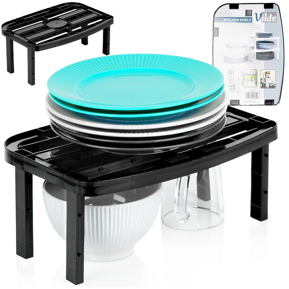 Deelt een kast of werkblad in twee niveaus, zodat je borden, mokken en kommen overzichtelijk kunt opbergen en orde houdt.
