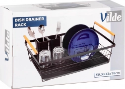 Houd het aanrecht droog en je vaat overzichtelijk geordend. Dit ruime afdruiprek van duurzaam roestvrij metaal in het zwart biedt sleuven voor borden, ruimte voor glazen en kommen en een afneembaar bestekbakje dat je zowel binnen als buiten het frame kunt hangen. De geïntegreerde uitneembare lekbak vangt water op en vereenvoudigt het onderhoud.